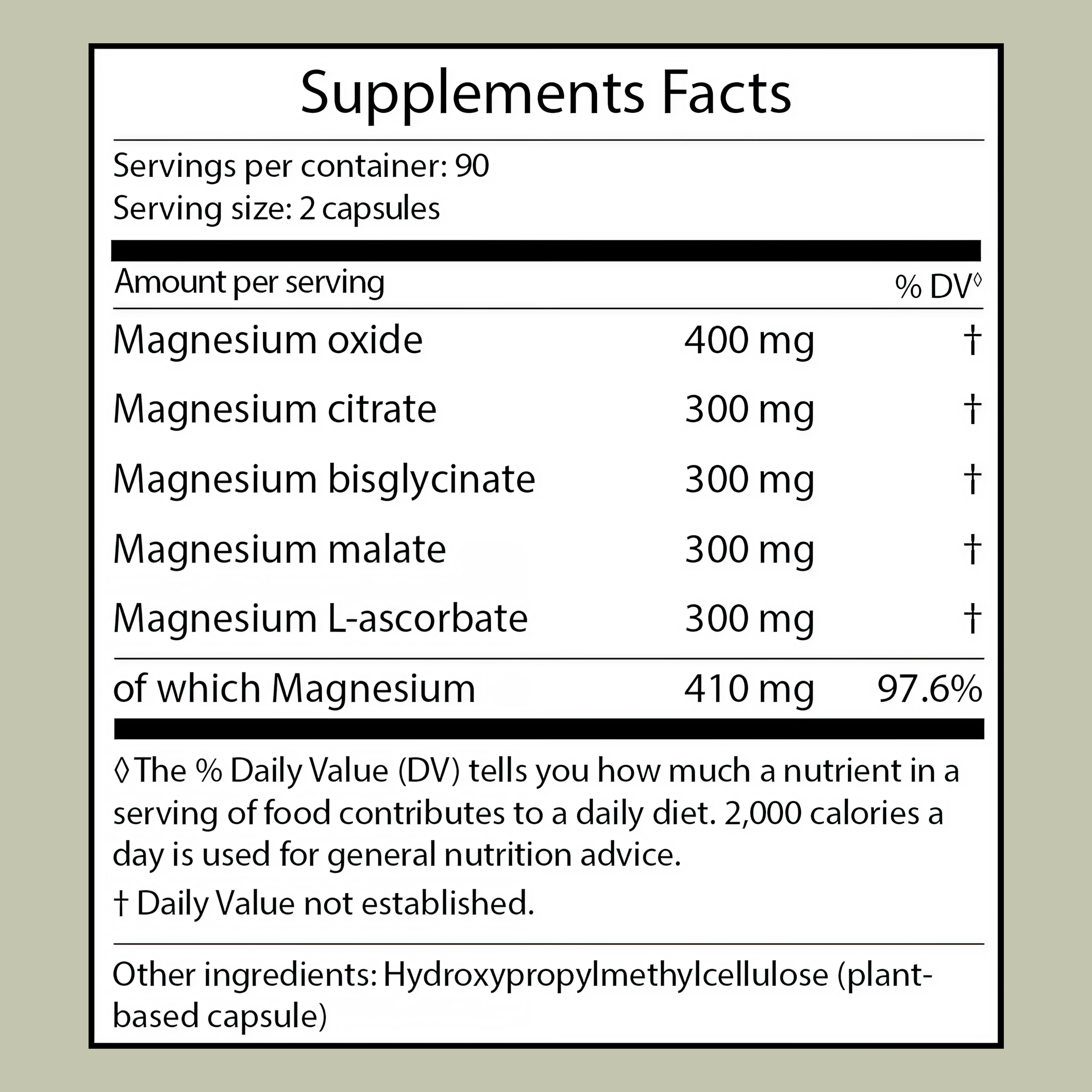 | Magnesium bisglycinate | 300 mg | † |