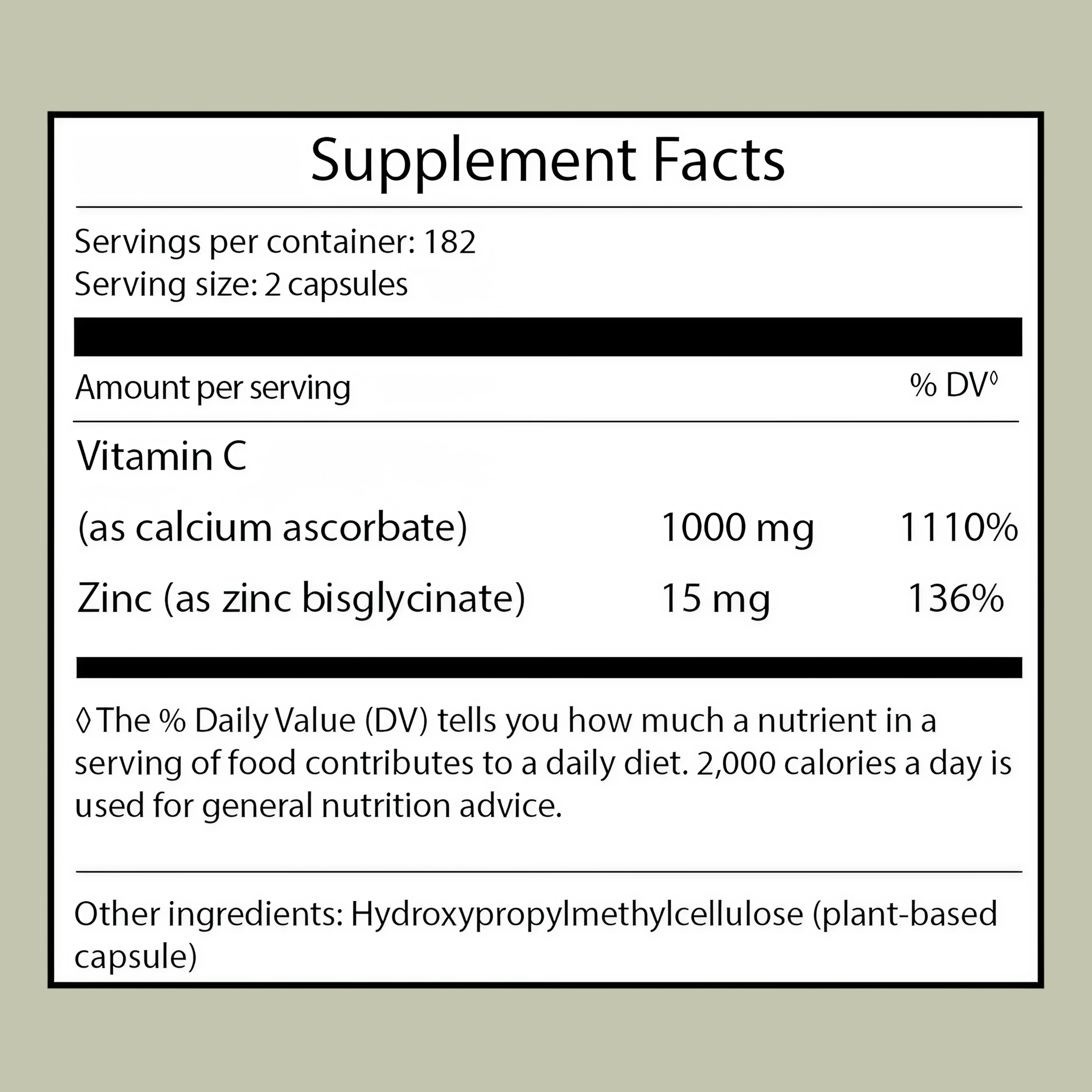 | Vitamin C (as calcium ascorbate) | 1000 mg | 1110% |